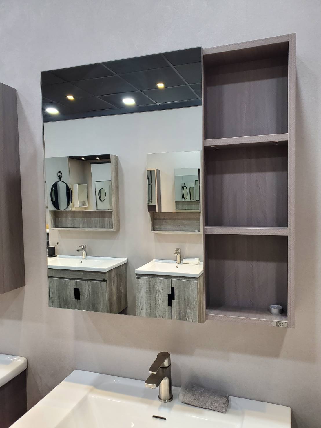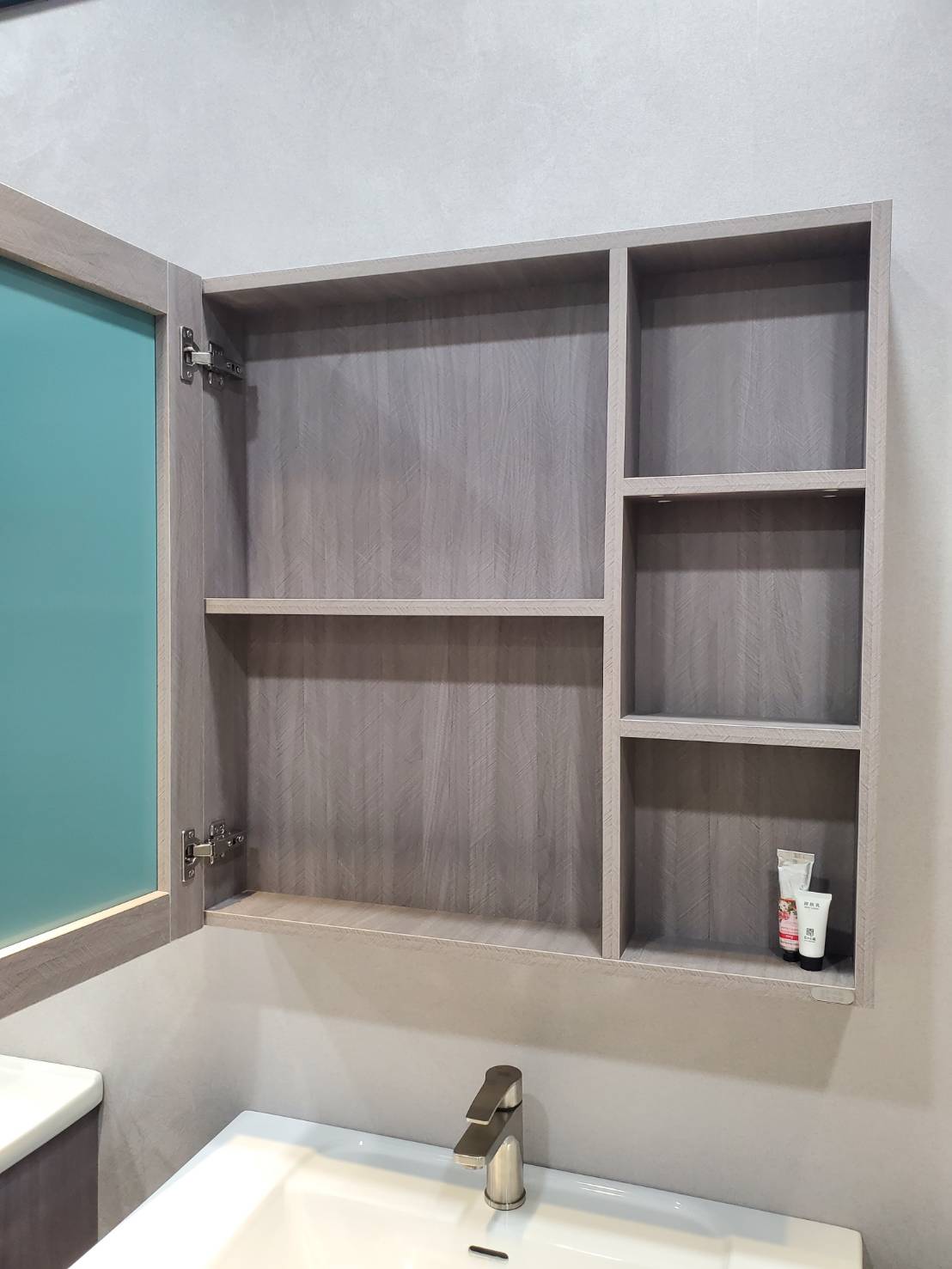 • 鏡櫃材質:PVC發泡板,外貼皮。