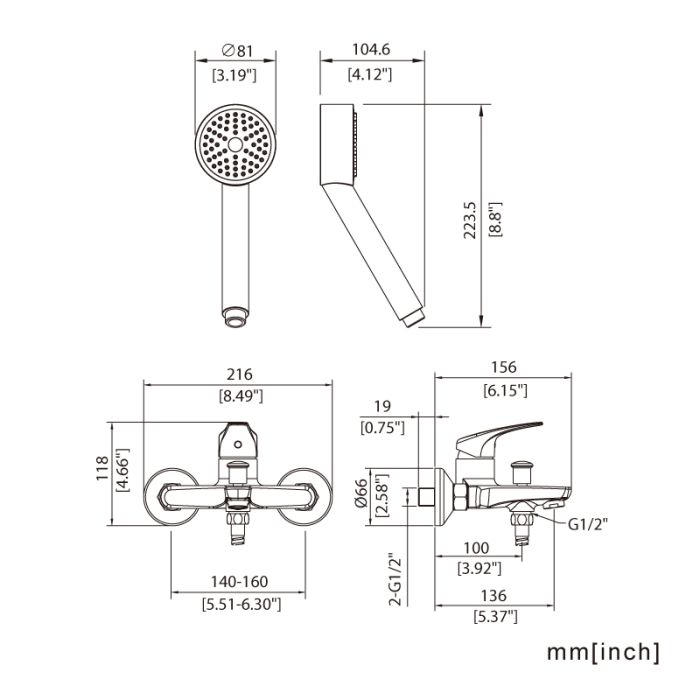 S5380601-TW 海廷頓-迪佐單把掛牆淋浴浴缸龍頭